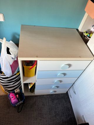 Pequeña cajonera con un diseño moderno y funcional. Ideal para organizar tus objetos. Tiene años pero en buen estado y pintada a mano por mi. Acepto ofertas. - Acabado en tonos azul. - Fabricada con materiales resistentes.