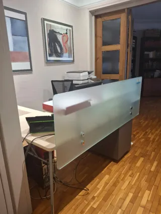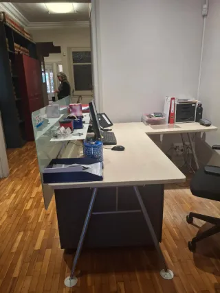 Escritorio de madera con unas medidas de 120x55cm. Cuenta con una práctica cajonera integrada. Se vende montado y solo acepto recogida en Gràcia, BCN, al lado de la parada de Joanic.