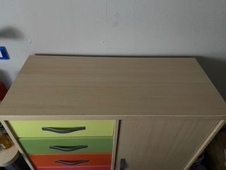 Mueble cajonera y gabinete multicolor