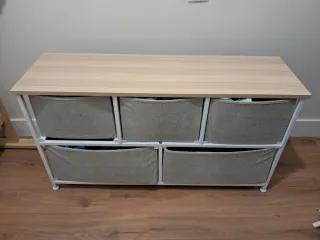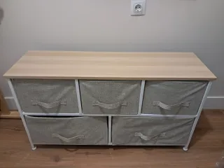 ¡¡ÚLTIMA OPORTUNIDAD!! POR MUDANZA. Mueble organizador con estructura metálica y encimera de imitación madera. Cinco cajones de tela. Medidas: 100 ancho x 30 cm fondo x 54.5cm alto