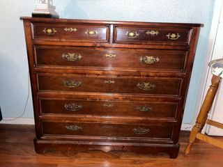 Elegante cómoda de estilo vintage con un diseño clásico y acabados cuidados. - Mueble de madera con múltiples cajones. - Tiradores ornamentados. - Ideal para añadir un toque de distinción a cualquier habitación.