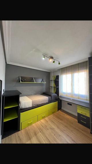Se vende habitación juvenil completa con un diseño moderno y funcional. Esta en perfecto estado. - cama nido con 2 Camas con cajones de gran capacidad. (Incluye los 2 colchones) -escritorio y cajonera. -zapatero integrado. - Estanterías integradas. - Acabado en color gris y detalles en verde lima. Para recoger en Leioa.
