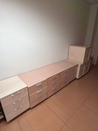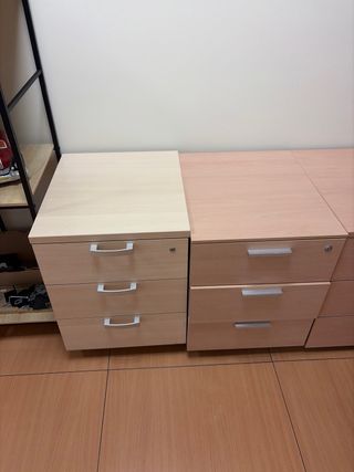 Conjunto de cajoneras de oficina en tonos beige y marrón. Varios modelos y colores Precio por unidad, descuento por lote - Estructura de madera y metal. - Diseño moderno y funcional. - Con ruedas salbo una - Con cerraduras
