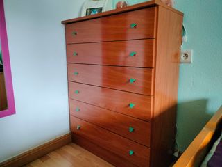 Vendo cómoda de madera color nogal con 7 cajones. Tiradores metálicos. Como nueva. No hago envíos.