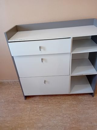 Mueble de almacenaje con dos cajones. - Cajón superior de color blanco. - Cajón inferior de color beige. - Estructura principal de color blanco. presenta algunas inperfecciones MAS INFO AL PRIVADO
