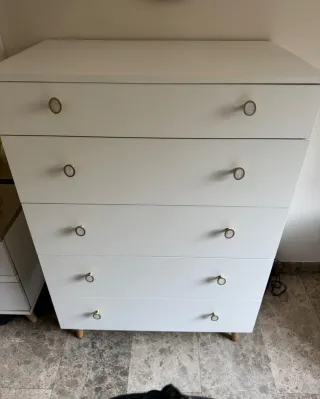 Cajonera blanca de madera en perfecto estado. Tiene algún toquecillo pero mínimo mínimo. Tengo dos unidades. Se vende a 20 euros por unidad. - Diseño moderno y funcional. - dos cajones amplios.
