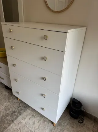 Cómoda Blanca con Tiradores Dorados