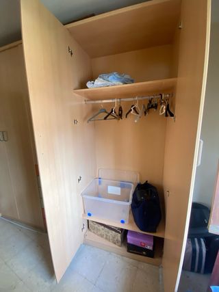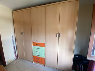 Se vende armario juvenil de gran capacidad, ideal para dormitorio infantil o juvenil. Muy práctico gracias a su combinación de puertas y cajonera central de colores. 📏 Medidas: • Alto: 2,50 m • Ancho: 2,60 m • Fondo: 54 cm 🪑 Características: • Color madera clara • Cajonera central con varios cajones (muy útil para organización) • Gran espacio para colgar ropa • Mueble robusto y funcional • En buen estado 💡 Perfecto para habitación juvenil por su diseño alegre y gran capacidad de almacenaje. 📦 Importante: El comprador debe recogerlo y desmontarlo. 💰 Precio: 200 € (negociable)