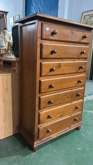 Cómoda de madera con un diseño clásico y elegante. Tiene algun signo se uso pero a simple vista esta muy nueva. Ha tenido poco uso - Acabado en tono marrón cálido. - Tiradores de madera a juego. - Amplio espacio de almacenamiento.