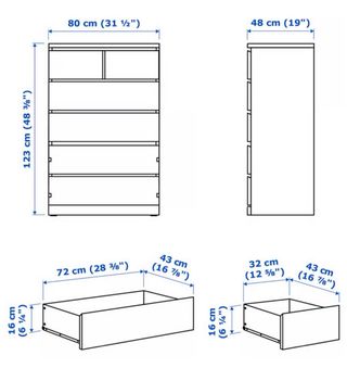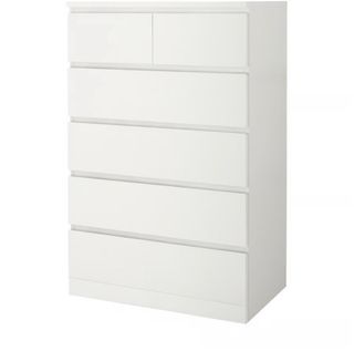 Cómoda de seis cajones de la serie Malm de Ikea. Su diseño moderno y funcional se adapta a cualquier habitación. - Seis cajones amplios. - Acabado liso y fácil de limpiar.