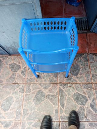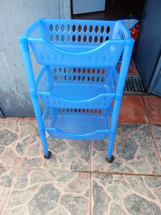 De plástico con tres cajoneras y con ruedas. Desmontable