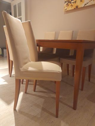 Mesa de madera cerezo de 90 ancho x 160 largo x 75 de alto extensible a 250 cm y 6 sillas