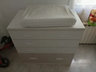Mueble sinfonier con un diseño moderno y funcional. - Combinación de colores beige y blanco. - 1 cajón grande y 3 normales - Estructura de madera. - Regalo cambiador - cuna a juego en mi perfil