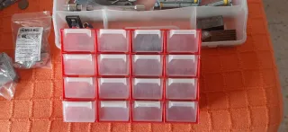 Práctica cajonera para organizar tus objetos pequeños. Cuenta con múltiples compartimentos para una fácil clasificación. -22x17x7 - Estructura principal de color rojo. - Cajones transparentes para ver el contenido.