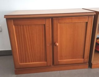 Se venden dos módulos de mueble auxiliar. - Fabricados en madera. - Color marrón. Falta un pomo de una de las puertas
