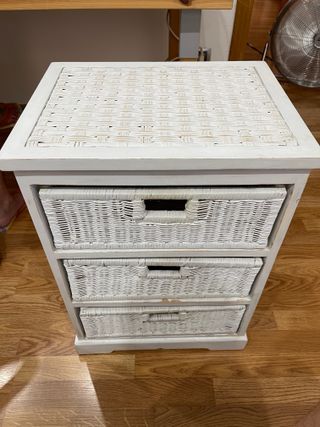 Cajonera Mimbre y Madera Blanca