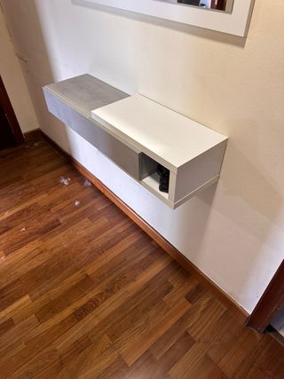 Mueble de diseño moderno para recibidor o salón. 95x26,5x19 - Acabado en gris y blanco. - Diseño flotante y minimalista. cajonera