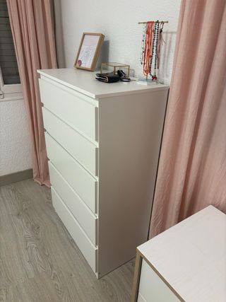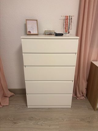Cómoda de cinco cajones de la marca Ikea. Su diseño moderno y color blanco la hacen perfecta para cualquier habitación. - Cinco cajones amplios. - Acabado liso y limpio.