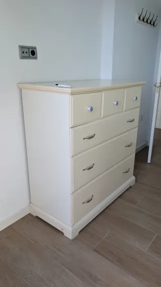 Cómoda en muy buen estado, de color madera clara, con 4 cajones amplios y funcionales. Ideal para dormitorio, habitación juvenil o como mueble auxiliar. Diseño sencillo y moderno que combina fácilmente con cualquier estilo. ✔️ Cajones espaciosos ✔️ Estructura sólida ✔️ Limpia y bien cuidada ✔️ Perfecta para ropa, documentos o almacenaje