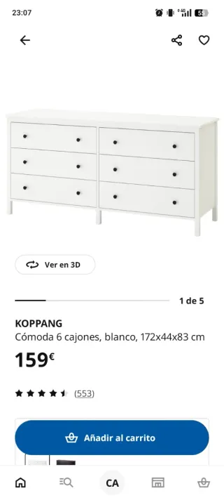 Cómoda KOPPANG Ikea 6 cajones. Está nueva.