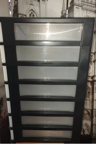 Práctica cajonera modular de plástico, ideal para organizar tu escritorio o taller. Su diseño permite un fácil acceso a tus herramientas o material de oficina. - Color negro y blanco. - Material de plástico resistente. - Las medidas internas de cada cajón son aproximadamente 55x50x50 mm. - El precio es por el conjunto completo de cajon. - ENVIO GRATIS a partir de 5 unidades o si el pago se hace con Bizum, Paypal, Revolut.