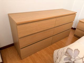 Cómoda MALM de Ikea con un diseño moderno y funcional. Sus líneas limpias y acabado en madera le dan un toque cálido a cualquier habitación. - Seis cajones amplios para almacenamiento. - Tiradores integrados para una apertura sencilla. - Acabado en chapa de madera.
