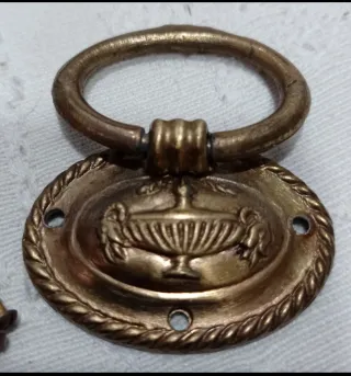 Conjunto de tiradores con un diseño clásico y elegante, perfectos para dar un toque retro a tus muebles. Medidas 4 x 3.5 cm - Diseño ovalado con detalle de jarrón. - Acabado en tono dorado envejecido. - Fabricados en metal resistente.