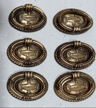 6 Tiradores Mueble Vintage Metal Dorado
