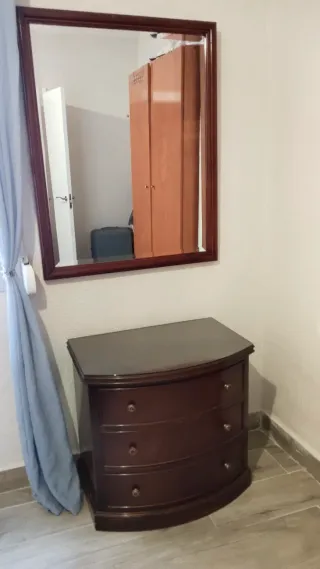 Cómoda de madera con espejo