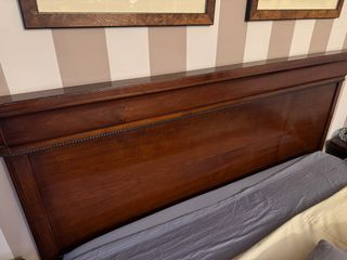 Conjunto de muebles para habitación de matrimonio en madera maciza. Incluye: cabecero -> 170 largo x 120 alto mesillas 2 unidades -> 64x34x58 bureau / cajonera -> 75x44x135 somier flex de 150x190 colchón flex de 150x190