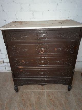 Cajonera/cómoda antigua mármol-madera
