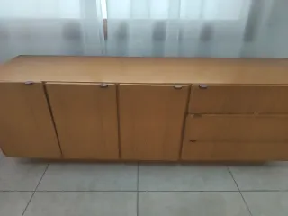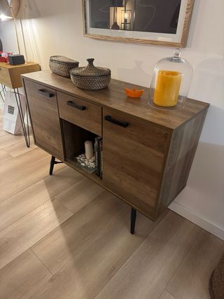 Mueble bajo tipo cajonera, ideal para almacenar. - Diseño moderno y funcional. - Acabado en tonos madera. - Amplio espacio de almacenamiento. Ideal para restaurar