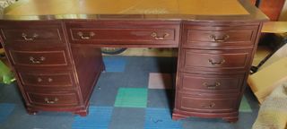 Se vende escritorio del año 1965, perteneciente a una oficina bancaria de entidad fundada en el año 1800. el escritorio tiene 160cm de largo y 80 cm de alto,con 4 cajoneras a cada lado y una central. En general llama la atención, lo señorial que es.