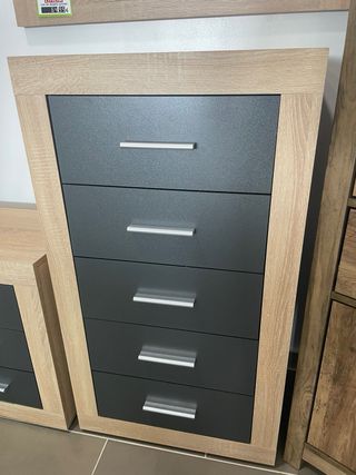 Una pieza que combina la fuerza del negro con la calidez natural del tono Cambria, creando un contraste moderno y lleno de carácter. Sus cinco cajones ofrecen gran capacidad de almacenamiento, mientras su diseño refinado aporta distinción y estilo a cualquier habitación. - Envíos a toda Galicia 🚚 - Pago contra reembolso 💲