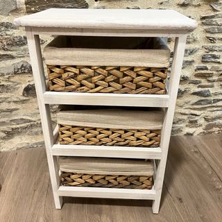 Cajonera de madera con 3 cestas de mimbre 58x35x25 Nueva