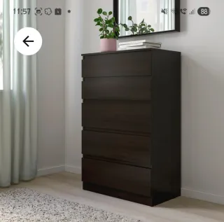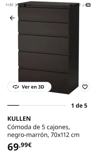 Cómoda KULLEN de 5 cajones, completamente nueva y en su caja original. - Color negro-marrón. - Medidas: 70x112 cm.