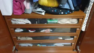 Mueble organizador de armarios con frentes de cristal. 2 cajoneras de madera. 65 € cada una. - Estructura de madera. - Frentes de cristal para ver el contenido.
