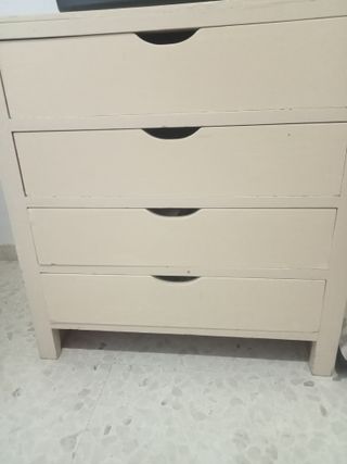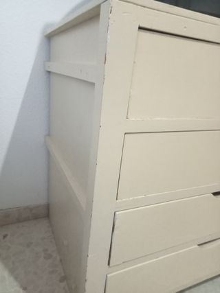 Cajonera de madera con un diseño sencillo y funcional. Una mano de pintura en la superficie de arriba y esta perfecta. en casabermeja - Cuatro cajones amplios. - Tiradores integrados en cada cajón.