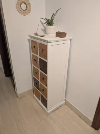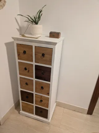 Mueble organizador con varios cajones. - Estructura de madera. Falta el último cajón