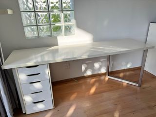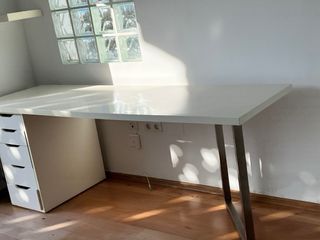 Vendo escritorio blanco moderno con cajonera a juego, ideal para oficina en casa, estudio o habitación. El conjunto está en buen estado, muy práctico para trabajar con ordenador o estudiar. Diseño minimalista y limpio, fácil de combinar con cualquier decoración.