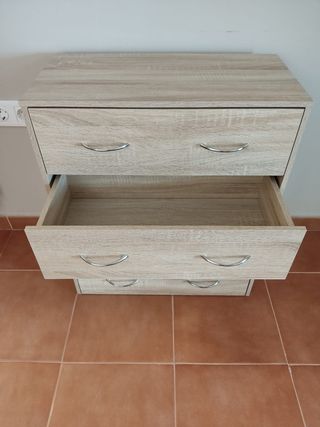 Mueble de almacenaje con tres cajones, perfecto para organizar tu espacio. - Diseño funcional y compacto. - Tiradores metálicos. - Ruedas, 2 con freno. - Alto: 57,3cm, ancho:42,5cm, fondo: 40cm En buenas condiciones, todos los frontales intactos, algunas marcas suaves en algua esquina pero nada grave. A recoger en Riviera, Mijas más en mi perfil A recoger en Riviera de Mijas (Mijas Costa) Más en mi perfil, no se negocia, quién la compré por la web la reserva y se la lleva.