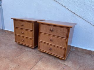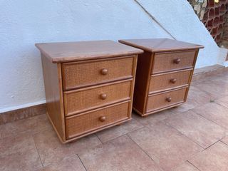 Conjunto de dos cajoneras con un diseño natural y cálido. Las dimensiones de un cajonera son 52x38x53cm. Ubicacion: La Cala de Mijas 29649 - Cada cajonera tiene tres cajones. - Tiradores redondos de madera. - Acabado en tonos marrones.