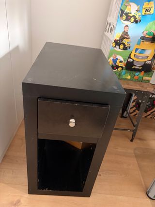 Mueble auxiliar con un cajón y espacio de almacenamiento abierto. - Diseño moderno y funcional. - Un cajón con tirador. - Compartimento inferior abierto. Tiene algún arañazo pero sirve para soportar un tablero y hacer de mesa de escritorio Una tiene un cajón, la otra estantería. se puede vender por separado