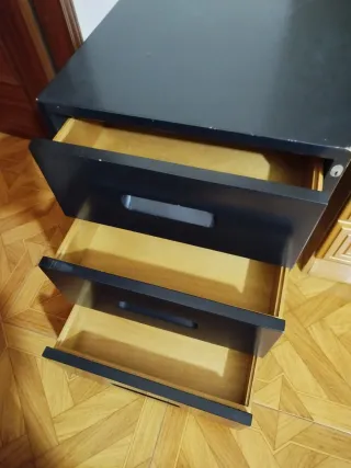 Preciosa cajonera de dos cajones, ideal para dormitorio o cualquier espacio. Es compacta y fácil de integrar en cualquier decoración. - Estructura robusta y estable. - Color negro elegante. - Dos cajones con tiradores metálicos.