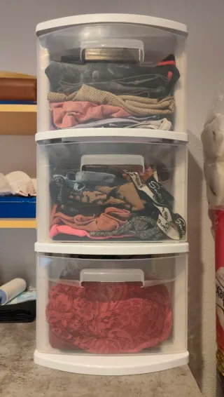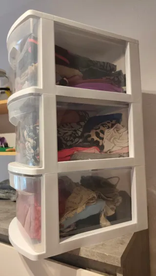 Práctica cajonera de almacenamiento con varios compartimentos. - Estructura transparente para ver el contenido. - Ideal para organizar ropa interior, calcetines u otros accesorios pequeños. - Diseño apilable para optimizar el espacio.