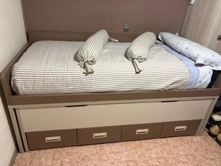 Conjunto de 2 camas ,medidas de armazón 2,10x1 m (cabe colchón de 2 largo x 90 de ancho ) en muy buen estado,armazón con 4 cajoneras vendo todo completo con colchones incluidos de muelles ensacados de poco uso (gran oportunidad) **Precio Negociable**