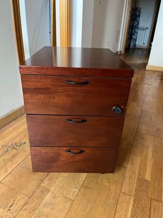Cajonera oficina madera con llave y ruedas