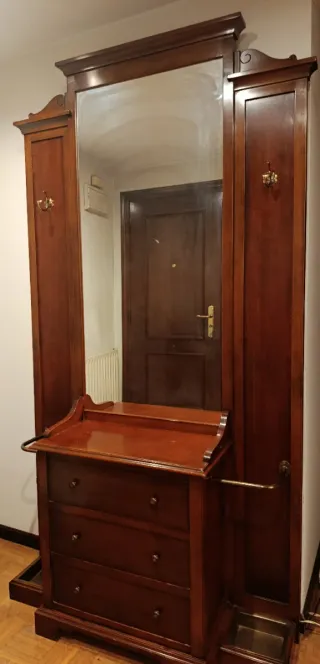 Elegante mueble de recibidor de madera de cerezo maciza. - Muy buen estado/muy bien conservado. - Transporte a cargo del comprador Medidas: 112 cm ancho x 220 cm alto Precio: 600€