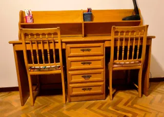 Escritorio madera maciza con 2 sillas