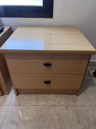 Conjunto de dos cajoneras o mesitas de noche de madera. - Diseño clásico y funcional. - Acabado en tono marrón cálido. - Cada unidad cuenta con dos cajones. 54 ancho, 39 profundo, 54 alto. A recoger en un 4o sin ascensor.